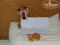 Сервис: Уборка в номерах ежедневная, кроме воскресенья, часто убирались в то время, пока мы были на море или на обеде. В уборку входит мытье полов с применением очень сильно пахнущих хлоркой моющих средств (иной раз понимали, что у нас убирались, по запаху хлорки, только открыв дверь в номер), вынос мусора и смена полотенец, брошенных с этой целью на пол. Постельное белье не меняли больше недели. Нам никак не удавалось застать горничную, чтобы попросить это сделать, пришлось оставить записку с просьбой поменять постели (ну, написАли как смогли, конечно!). Только после этого нам и белье чистое застелили, и все полотенца поменяли, даже те, которые висели на крючках в ванной.