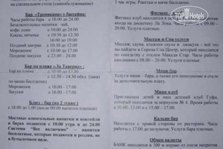 Выкладываю фотки "Режима дня" и "Услуги отеля" (фоток видов пляжа и територии уже достаточно чтобы сложилось впечатление об отеле). Надеюсь кому-нибудь они пригодятся.