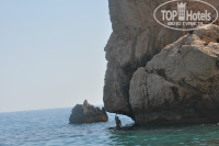 Море очень красивое, но для купания нужно ходить вправо по побережью 500 метро, там маленькая бухточка из камней, обязательно купите кроссовки для плавания(они есть и в супермаркете около отеля) и тогда в принципе купание не будет омрачено ничем. Гид поведал, что в Пафосе не бывает спокойного моря никогда, местные тут даже не купаются.