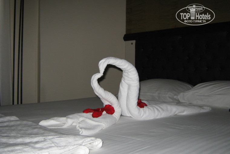 Итак, мы, семья с двумя карапузами 6 и 2 лет от роду, совершив довольно тяжелый 9,5-часовой перелет из Улан-Удэ в Анталию с дозаправкой в Новосибирске, загрузились в автобус Pegas Touristik и через 3 часа прибыли в отель. В 10 часов вечера сделали несколько шагов к ресепшену и… вот это красота! От внутреннего пространства отеля настроение поднимается само собой! Сразу же нам вручили по бокалу с соком. Мы попросили номер потише, нам без проблем выделили номер 201 с видом на горы. Любезный портье проводил в номер и показал нам абсолютно все, что нам было нужно. Долларовая мелочь осталась в duty-free в Анталии, но сотня российских рублей совершенно устроила портье.