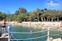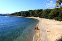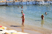 Да, небольшой. Минус в том, что детям на песочке негде поиграть. Но в целом что делать на пляже? Купаться! Заход в море супер! В Алании такое редкость. Первый раз попала на пляж, где заход в море без каменных глыб. Море чистое. Уже все писали про занятые лежаки. Да, проблема есть. Но скажу так: лежать и вкушать красоты природы намного приятнее у бассейна, там красиво, море видно. А вот вид с лежаков на пляже - не фонтан. Так что туда лучше просто бегать купаться.