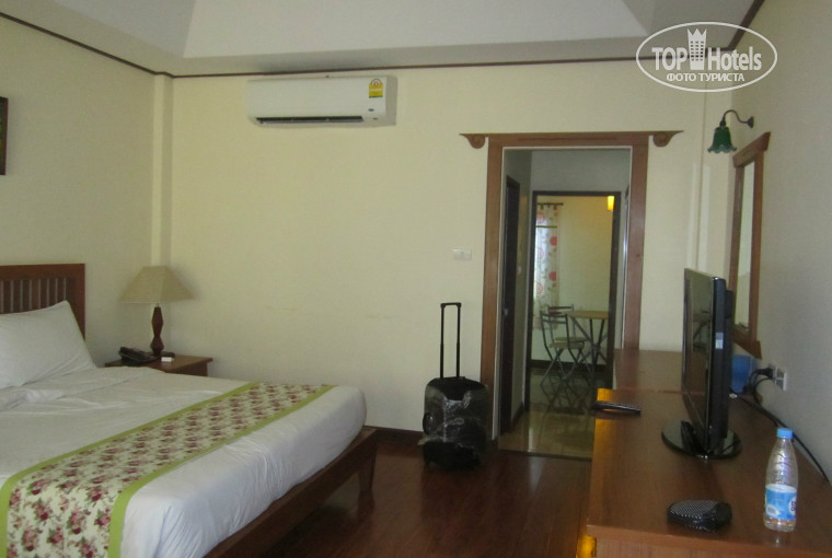 Что еще про номер.. Холодильник работал хорошо, ТВ новый, плоский, с русскими каналами, мебель в хорошем состоянии, есть также плетеная мебель -кресла и стол, мы их вынесли на веранду и пили чай.