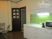Номер нам понравился - просторный с двухспальной кроватью и отдельной кухней. В кухне было: гарнитур, стол, 4 стула, СВЧ печь, чайник, 2 стакана, 2 чашки, 1 блюдо, 2 вилки.