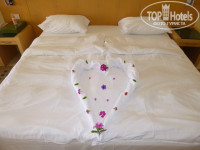 Сам номер- отличный!!! Большой, светлый, чистый, мебель новая. Большой балкон с приспособой для сушки белья, стол и стулья. В номере большая кровать с хорошим матрацом, стол, кресла, стулья, большой трельяж, комод, огромный шкаф с кучей вешалок, сейф, жк телевизор, минибар (фанта, сок, вода, ), чайник, посуда, чай, кофе, сахар. Абсолютно все работало. Кондиционирование - центральное, без нареканий. Охлаждает быстро. В первую ночь мы допустили ошибку - спали с открытым балконом без кондиционера. Было комфортно, НО! проснулись ночью все искусанные комарами и до утра чесались, не могли уснуть. Полегчало только под утро. В дальнейшем балкон закрывали, включали кондей на 23 градуса и все было ок ) Больше никакой живности в номере замечено не было.