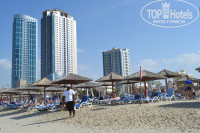Чистый, ухоженный. Может это ограждение и портит его красоту, но зато оно защищает от ветра. Когда мы ездили в солнечный день в Джумейра Бич Парк в Дубае, там дул невыносимый ветер, при чем холодный, а волн в море небыло. Вот такой получается парадокс. Персонал постоянно убирает с берега большие камни, которые приносит море. Волны достаточно большие, хотя это все от моря зависит и его настроения. Метров 60 от берега вода по пояс. Пройдете 100 м - по шею. Очень необычно. В Крыму и Одессе после 20-30 м местами с головой накрывает :) Отличное место для детей если нет волн. Полотенца выдают на пляже после того как вы запишитесь. Дальше идете занимать лежак поудобнее. Советую сразу его развернуть в другую сторону. Солнце сходит со стороны дороги.