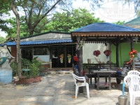 Завтраки хорошие, в Тае везде обильно кормят: омлеты, вода, молоко, хлопья, соки, тосты с джемом и маслом, пироженки, и масса горячих блюд с рисом и мяском. Я не умею такое есть на завтрак, поэтому не смогу перечислить. А и фрукты конечно! Арбуз-ананас-фруктовый салат всегда. После завтрака мы выходили с животами, тугими как барабаны и катились на пляж.