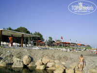 Пляж нормальный, лежаков достаточно, море чистое. В пляжном баре есть безалкогольные напитки и пиво, там же подают обед с 12.30.