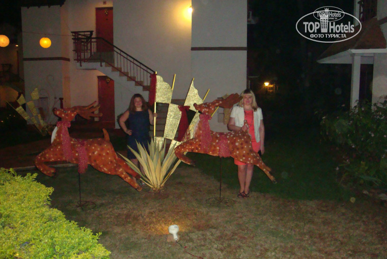 Мы встречали в отеле Новый Год. На большой зеленой лужайке поставили красивые белые столики, горели разноцветные гирлянды! Было около 60 блюд: молочный поросенок, шашлык, салаты, утка, ягненок, много много всего и все очень вкусно! Понравилось шоу! А ровно в 12 ночи раздался красочный салют ! Он потряс всех! Единственный минус- В оплату НГ ужина не входили напитки. Шампанское стоило 1800 рупий и было ужасно кислое.