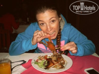 Еда превосходна! Как она может надоесть??!! Рыба, курица, мясо-каждый день по-разному! В фольге, без фольги, барбекю, жареные, пареные, на гарнир тоже полно всего (коричневый рис пришелся мне по вкусу, картофель). Но на их сок я бы не налегала, как бы зубы после отпуска не пришлоь лечить)