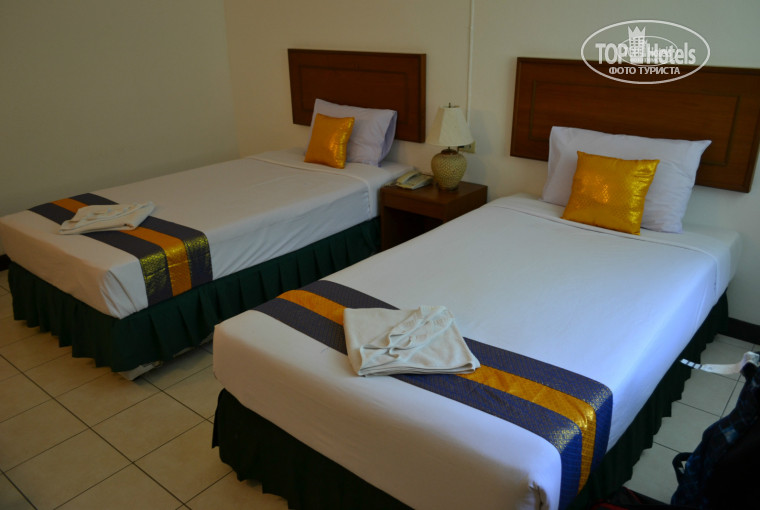В тайланде отдыхали первый раз, и отпуск попал под пик высоких цен на Пхукет, поэтому решили немного сэкономить на путевках. Единственное очень не хотелось на патонг, поэтому были согласны на любой пляж кроме него. Приехали в отель примерно 12.30, заселили тут же. Номера обычные: аккуратные, убранные, без какого либо плохого запаха. За 12 дней не встретили ни одного насекомого (номер расположен на 2 этаже может по этому). Вид из окна на речку "вонючку"))) (вид не очень, но запаха сильного не было), радовались, что не на проезжую часть!в номере было тихо и уютно! Мебель старенькая, но нам было неважно!))) Телевизор и кондиционер работали исправно. Есть два российских канала(1й и нтв). Слив в душе один раз засорился, но засор быстро устранили, когда проводили уборку в номере-мы были в это время на пляже). Убирались каждый день, постель меняли часто раза 4-5 за 12 дней точно. Обслуживающий персонал очень улыбчивый и добродушный, всегда нам говорили спасибо когда сдавали ключ на ресепшн))). На ресепшене есть вай фай, скорость хорошая. Если надо кому пароль : kbi0123456789. Территория отеля довольно зелёная, особенно понравилось, что здание отеля утопает в розовых цветах. Завтраки однообразные, по вкусу обычные- но нам нравились) Мне понравился их апельсиновый джем и оладушки!)вкусняшка). Бассейн по глубине и размеру хороший, вода по началу была слегка мутная, но потом её почистили какой то химией и стала совсем прозрачная). Мы купались не часто там, в основном ходили на море. На второй неделе проживания заселилось много быдло-русских, которые постоянно ошивались около бассейна и пили много пива-купаться там и не хотелось. Море шикарное)))Единственное приходилось немного пройтись вдоль пляжа на север и там лежали на шезлонгах, потому что в начале пляжа много лодок и еще там впадает река вонючка-не хотелось в ней купаться))). Считаю расположение отеля очень удобным, т.к рядом расположены магазины 7eleven и Big C, обменники, много кафешек, рынок (работает по суб и средам)-некоторые на этом рынке одевались за 500 бат)))но если честно там откровенный ширпотрёб...если нужно одежду покупать то лучше на улице расположенной параллельно пляжной линии. Везде торгуйтесь!даже в аптеках. Ужинали в уютном кафе DREAMS на берегу моря-очень вкусно и не дорого готовят, приветливый персонал и атмосфера-именно пляжного кафе(уютно и мило, на столах свеча, цветы, сами столы и стулья из бамбука)-в общем сплошная романтика!Находится он по правую сторону от белого мостика по которому спускаешься на пляж. Нам всё в принципе понравилось-мы так то люди не прихотливые. Но людям которые привыкли к европейскому безупречию номеров и суперсервису ехать сюда не советую-не понравится. Если возникнут ещё вопросы пишите отвечу https://vk.com/id30882593
