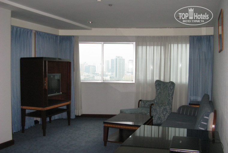 Сам отель очень большой, несколько 30-этажных башен, с красивым ресепшеном и бассейном на крыше 11-го этажа. Номера просторные, немного "потрепанные", но вполне ничего. У нас был двухкомнатный номер на 18-м этаже с панорамным видом, мини-кухней (из полезного - чайник, мойка, холодильник). Кровать в номере большая и удобная. Всякие шампуни, шапочки, лосьоны в достаточном количестве. Убирали нормально. Персонал всегда готов прийти на помощь. На этом плюсы заканчиваются.