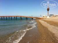 МОРЕ - пляж основной+ пляж вип+пирс! Море чистое, заход пологий, мелкая галечка! Всегда много лежаков - проблем с заниманием мест не было, официанты работают прекрасно, есть также и вип пляж за доплату и классный пирс с баром! Я купалась, загорала, полный релакс в кафе рядом с морем...все замечательно)) Песка при входе в море -нет!