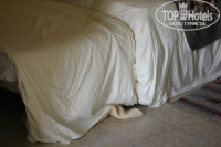 В номерах не убирают,только делают вид, грязные полотенца с пола поднимают и кладут аккуратно сложенными на полку. Пыль со светильником не вытиралась очень давно (судите по фото сами). Постельное белье частично чистое и глаженное (простыни еще на чистые похожи, а вот пододеяльники-совсем ужас (есть на фото). Про мебель я вообще молчу, лучше сами посмотрите. Освещение в ванной комнате работало через день, что-то с проводкой...