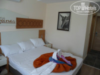Здравствуйте, прилетели мы поздним вечером 22 апреля, на ресепшен встретили с улыбкой ,заселение прошло в течении 5-10 минут. Заселили нас на 3 этаж ,заходим в номер осматриваемся ,первые мысли хороший светлый номер, но есть свои недочеты .Первый недочет это поливайка для цветов ,душем это назвать нельзя никаких шторок нет ,запах сырости . Второй недочет это вафельные покрывала это просто ужас видел такое еще в 90x трехзвездочных отелей в Турции. Сейф доисторический под ключ ,крайне неудобно таскать ключ собой ,можно поставить уже кодовый .