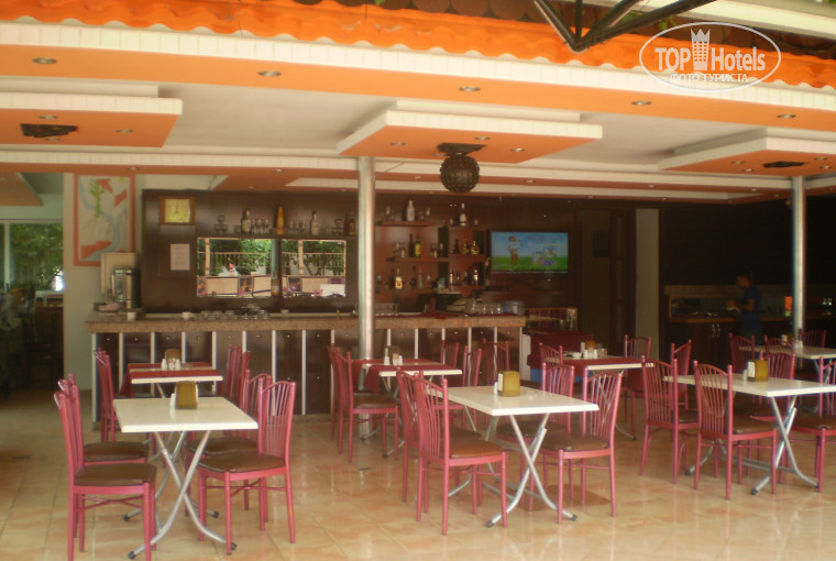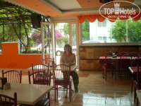 После заселения меня накормили обедом. Очень удивило отсутствие шведского стола. Объяснили это тем, что пока мало гостей (действительно, на момент моего приезда в отеле было 5 гостей, а через некоторое время вообще 1 – это я). Питание было, по-русски выражаясь, комплексным – всё приносил и уносил официант (он же бармен и секьюрити по ночам), но можно было попросить хоть сколько добавки. Еда обычная троешная: утром яишница, пару кусочков сыра, несколько солёных оливок, масло, джем, мёд в мизерных «ванночках», свежий белый хлеб, пол-помидорки и два кусочка огурчика. Обед – суп-пюре, салат из помидоров-огурцов небольшой салат из зелени со сметаной и тушеные кабачки, на второе овощное рагу или турецкая перловка, иногда отварной картофель, курица в разных модификациях, пару раз была говядина, белый хлеб, ужин – примерно тот же набор блюд, что и в обед. Всё свежее, только что приготовленное. Завядшего и протухшего не было. Как не было и фруктов. Вообще. Последний день вечером вынесли тарелку чудесных турецких апельсинов. Но это было 1 раз за все 14 дней. С голоду не помрёшь, но и разнообразия – 0. Фрукты и всякие вкусности, если хотела, я покупала на рынке или ходила в местные забегаловки. Напитки: всё как обычно – водка, раки, спрайт, соки-юпи, джин, вино красное и белое (наливают из бутылок – не разбавляют, но всё равно качество этого «вина» - отвратительное, больше двух бокалов не рекомендую). Пива не было и в этом сезоне не обещают, что очень меня огорчило, т.к. крепкие напитки не пью, а вино – смерть желудку. Кофе из кофейного аппарата, вода, чай, сахар – без ограничений. Спиртное наливают до 10 вечера, а кофе-чай можно попить в любое время, предварительно спросив разрешения.