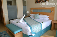 При заселение оказалось, что стандартный номер с видом на сад, на самом деле с видом на забор, пришлось доплачивать за нормальный вид, в итоге нам была видна вся территория, включая море. Номер удобный и чистый.