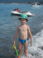 ПЛЯЖ заслуживает похвалы. Идти пешком до пляжа нет смысла, бесплатный шатл возит каждые 30 минут (туда и обратно), очень удобно, не надо шлепать по жаре. Территория пляжа большая: детская беседка, песочница, качели, теннисный стол, большие шахматы. Шезлонги, лежаки, матрацы – бесплатно. Всем всего хватало. Хочешь уединиться на пляже – есть будуары (платные) . На пляже песок, но вход в море – мелкая галька, не совсем удобно, но зато вода – прозрачная! Море – класс! Мой ребенок собрал много мелких ракушек и камешков. На пляже есть бар: напитки, вкусные лепешки, выпечка. Мой ребенок был очень доволен!