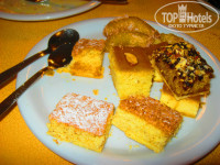 Теперь о еде. Брали мы полупансион(завтрак и Ужин). На завтрак были офигенские булочки, хоть и одинаковые каждый раз, но булочки и выпечка у них за уши не отташишь. И к сожалению кроме булочек с кофе на завтрак больше съесть и нечего. Ужин, тут уже выбор побольше, всякие салатики, курица,рыба, картошка,рис, и снова вкуснейшие тортики, но вот обслуживающий персонал , как оказалось это с виду они толко паиньки, наш постоянный официант,откуда то видимо узанл что мы пришли последний раз поужинать( 7 день), и надул нас на денюшки при оплате вина, взял и просто не дал сдачу,причем прилично там было.
