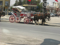 За территорией отеля: Очень грязно! Транспорт очень удобно расположен, везде стоят такси, распространен паровозик(это если по нашему, по их забыла как), лошади в упряжке. Но лучше пешком, тоже ведь интересно) .На улице пристают, если могут прочитать название отеля. Сначала ,когда нам чуть ли не каждый второй тунисец говорил: О брат я бармен из твоего отеля,как дела?, мы не поняли в чем дело, а потом я догадалась что они видят браслетики на руке, и уже давно выучили цвета браслетов в отелях. Лучше переверните браслет на обратную сторону, в этом отеле оборотная сторона белая, таким образом никаких надписей не видно, и меньше пристают. Ходили на медину, не понравилось, так как не любители мы торговаться и навязчивости. Но ничего против не имею,некоторым нравится.