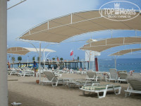 Отдыхали всегда на море,вода конечно не как в сентябре!Но мы с Урала!Для нас весьма приемлемая!Лежаков всегда хватало!Места очень много!Заход в воду нормальный - мелкая галька.Бара на пляже нет!Стоит вода в кулере и автомат с порошковыми соками...Приходилось страждущим ходить к бассейну!))или в снек бар.