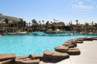 Территория большая, мало зелени, не могу сказать что красивая территория. Бассейнов хватает и для взрослых и для детей. Для детей отдельный бассейн с горками. Вода мягко говоря прохладная))