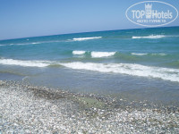 Пляж недалеко от отеля, надо переходить дорогу, пешеходного перехода нет. Лежаки и зонтики стоят 2 евро. Море возле берега неглубокое, примерно по пояс, хорошо прогревается.