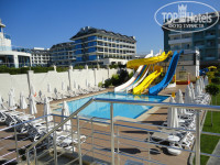 - в качестве пожелания хотелось бы чтобы детскую площадку сделали под каким-нибудь «укрытием», потому что днем там так все нагревается, что ребенку сильно нечем заняться. И сильно не хватает русского перевода на анимации.