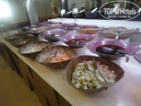 Сначала показалось, что скудновато, но потом мы распробовали и каждый раз находили что-либо на свой вкус. Голодными ни разу не остались. На завтрак есть сыры, омлет с молоком, глазунья, хлопья, плюшки, фрукты, блинчики, оладушки, вафли и многое другое. С 8.00 на улице начинают жарить яичницу с начинками (помидоры, сыр, лук, грибы, что-то еще точно есть, не запомнила). В обед и на ужин – 2 вида супа (в качестве добавок предлагают сухарики, сыр, зелень), мяско или рыбка-гриль, птица всегда. Ребенка 2 лет кормила рисом, картофельным пюре или спагетти с мясом, курицей, индейкой или рыбой. В ресторанах есть детские стульчики и на открытом воздухе – зона для некурящих, где выделены места специально для маленьких гостей (столы, стулья, посуда, всегда на столах салфетки и «детское» меню). Из фруктов застали арбузы, дыни, персики, абрикосы, нектарины, грейпфруты, апельсины, сливы, пару раз была черешня и один раз клубника. По питанию больше не буду писать, задавайте вопросы (если будут)