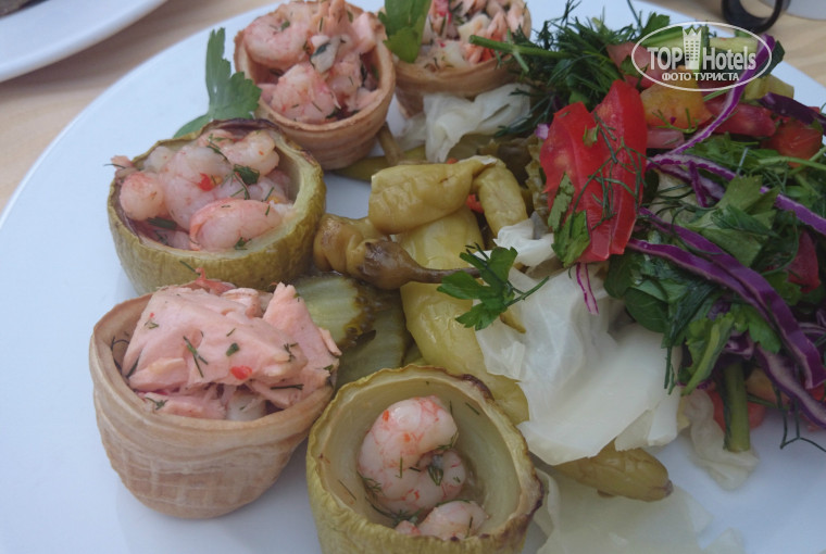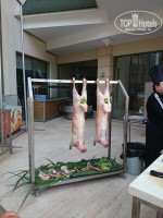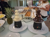 4. Питание. Нам всё понравилось, питание отличное. Каждый день мясо на гриле: то индейка, то ягненок. Котлетки всякие. Устраивают каждый день тематические ужины, украшают всё. В рыбный день жарят на гриле тунца, делают салаты с креветками, жарят морепродукты с овощами. Сладкого полно. 2 основных ресторана, один из них прям возле пляжа, мы в нем обедали, там можно в купальниках, когда идешь с пляжа очень удобно, он до 16:30, а вечером работает, как рыбный ресторан а-ля-карт. Вообще пунктов питания очень много. Есть шатёр с лепёшками и пельменями - дети на пляже уплетают за обе щёки. Во 2-м ресторане гамбургеры, картошка фри и т.д. Часам к 16 возле бара у бассейна хотдоги. А ещё на минус первом этаже где-то часов с 16 кофе-пауза - приносят пирожные, бутерброды, ставят шоколадные фонтанчики с белым и темным шоколадом и нарезанные фрукты, можно набрать фруктов в тарелочку и залить всё шоколадом, вкуснотища... Если там перекусить, на ужин уже не хочется...