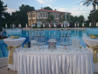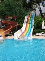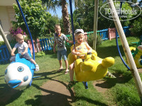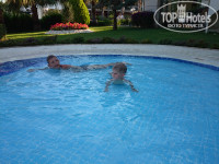 3. Территория большая, ухоженная, везде газон, цветы, фонтанчики. Бассейн большой, для детей есть ещё 2 - 90см глубиной и 38см. Наш мелкий из него не хотел вылазить. 2 водные горки, работают, как и везде по часам.