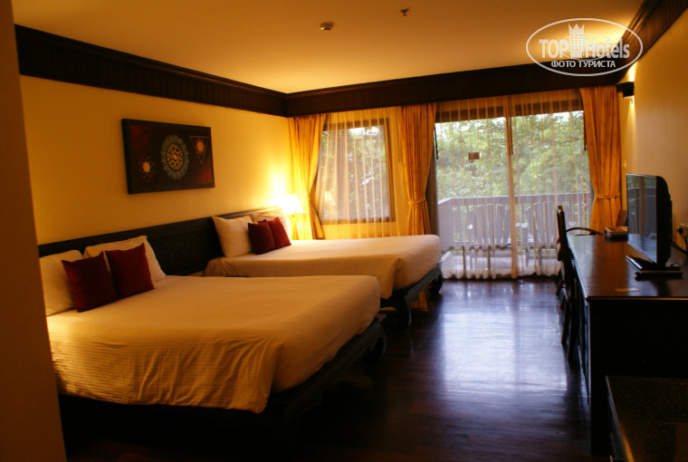 1. МЕСТО РАСПОЛОЖЕНИЯ И ТЕРРИТОРИЯ – Као Лак –пляж Нанг Тонг. Городок Као Лак чистый, с тротуарами, расположен у подножия высоченной горы с буйной растительностью, чем-то напомнил Самуи. Из аэропорта Пхукета в отель мы добрались за час, обратно ехали дольше, был дождь и водитель не торопился. Территория отеля очень большая – простирается от пляжа до улиц городка. Отель разделен на 3 части – сиавью – с выходом к морю и пляжу, через не проезжую дорогу - гарден – с самой большой территорией, фэмили- с выходом на центральную улицу (к Макдональдсу). Ресепшен находится на гарден-стороне, там же расположен ресторан, где мы завтракали. В каждой части отеля есть свой бассейн. Номерной фонд состоит из трехэтажных корпусов и бунгало с личными бассейнами. Вдоль корпусов расположены прудики с рыбками, растительностью, чистые и без посторонних запахов. Дальше за оградой расположены номера фэмили, кто-то в своем отзыве их назвал «гетто». На нас такого впечатления они не произвели, корпуса очень приличного вида, расположены обособленно с закрытым двориком, где есть развлечения для детей. Какие комнаты и удобства внутри – не знаем. Мы жили в гарден. Это большая часть территории, бассейн значительно больше, там же находится водная горка (побоялись шею свернуть), джакузи (слабенькая). Там находится теннисный корт. Территория чистая и ухоженная, вся в зелени, полно урн. На бассейнах, у пляжа под роспись выдаются полотенца большие и чистые. Шезлонгов изобилие – и возле бассейнов и у пляжа.