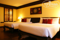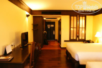 2. НОМЕР – наш номер Делюкс находился на втором этаже трехэтажного корпуса. Вид из окна – сплошная растительность. Тишина. Утром просыпались под пение птиц и петухов. Комаров в номере не было, но на территории, особенно возле вилл, было их достаточно. Номер стандартный. Две кровати по 1,5 м шириной, два кресла, столик, телевизор, холодильник, чайник и посуда для чая и напитков, фен и всякие мыльные принадлежности. Очень чистое белье и полотенца, два белоснежных халата и тапки. Сейф электронный. Два шкафа и комод. Ванна и отдельный душ за стеклянной дверью. Показывает 1 русский канал. На балконе – два кресла и сушилка для белья (оставляет следы, подкладывайте целлофановые пакеты). Кондиционер удобно расположен, не очень громкий. Напор воды очень хороший, перебоев не было. Убирали хорошо. В знак уважения мы оставляли 20 бат. Если отель будет заполнен до отказа, слышимость будет достаточная .