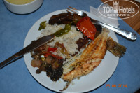 Питание в отеле на высшем уровне. Это какая-то бесконечная "обжираловка". Завтрак переходит в поздний завтрак, далее в ранний обед, в обед, полдник, ужин и поздний ужин. Повара и официанты трудятся просто не покладая рук. Все так вкусно, аппетитно. Здесь свежая, прямо при тебе пожаренная речная рыбка. (Форель, Дорадо) Гриль из курочки, люля из говядины. Обожаемые мной овощи гриль (перчик, баклажан, помидорчик, кабачок), и многое другое. На завтрак великолепные пончики, которые тоже готовятся прямо при тебе. Яичница типа "пашот". Разнообразные фрукты: клубника, черешня, персики, абрикосы, арбузы. Все свежее и вкусное. Вообще персонал в отеле работает замечательно. Официанты, горничные, уборщики на пляже: чистят моют убирают, никто ни за что не упрекает. За 10 дней нашего прибывания горничная каждый день у нас убиралась ( мы уже даже отказывались от уборки), нам 3 раза поменяли белье, и по-моему через день меняли полотенца.