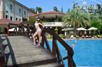Если отталкиваться от цены, то можно сравнить с Турташем 4* all. 1) Прилетели в 7 утра, сразу же предложили доплатить 80$ за 1 корпус. Я согласилась, и нам тут же выдали ключи от номера. В последующие дни поняла, что это была ошибка и развод персонала. В выходные в парк приезжают местные жители и жарят шашлыки, весь 1 корпус обволакивает дымом и запахом от костров и шашлыков. Были в гостях во втором корпусе, такой же номер. На второй день пребывания выяснилось что раковина засорена , ванная протекает. Вызов сантехника (его мы ждали три дня) вопрос не решил. Наш номер был недалеко от лифтов, там же были скамеечки на которых очень любили кучковаться горничные и курить. Да да, курить , и это все спокойно разрешалось. 2) Пляж - в АП его просто нет, то что называется пляжем это в два ряда лежаки, точнее в 1,5 , т.к. половина уже в море. Если заходить в море у самого пирса, то ноги вязнут по колено в тине. Дикий пляж - надо плавать либо с местными турками ( а это мужчины и дети) либо по дальше убиться об камни . Мы ходили на пляж озкаймака, это на лево от пирса. Но там охранник бесцеремонно скидывает полотенца АП. Наши он даже заталкал в пляжную сумку. Пляж тоже грязный, никто его не чистит, водоросли естественным образом засыхают и перемешиваются с песком. В первый раз вижу, что бы на пляже не было бара, такого напитка как айран здесь не знают. 3) Бассейн - Есть не большой бассейн с горками , в первый раз за свою жизнь дочка отбила себе спину. Синяки были вдоль всего позвоночника. Другой бассейн, где проходят активити - довольно странная конструкция , он разделен на три части, НО везде одной глубины 1.6 м, нет постепенного входа. А это значит дети плавают в основном на кругах, низкорослым вроде меня (рост 1.58) встать на ноги нельзя, а высоким нет возможности нырять. аквааэробика проходит у бортиков. Еще удивил работник, который убирает у бассейна, чистил решетку, а потом это щетку сполоснул прям в бассейне. 4) Столовая . Сразу скажу - мяса по факту нет. Как бы смешно не казалось, но куриные пупки я увидела, правда один раз были. В основном куриная печень и сердце. Альтернатива соевые "мясные" палочки. Поразило большое количество мух над едой. Всю неделю пропитались рисом и огурцами. В ресторане (турецком) основное блюдо в меню указано плов , но по факту подали котлетку и картофельное пюре ))). Спиртное странное, смогла выпит 1/2 бокала вина. Посуда в наличии , но нет вилок, десертных ложек. Варенье кушали столовой ложкой ))). Не хватает чашек. Персонал наглый, в том момент, когда люди ждут чашки, запросто может подойти официантка со своей чашкой и налить себе чай , при нас выпить и пойти дальше. 5) Анимация. днем с большим трудом удавалось набрать людей на активити у бассейна. Батча проходила за первым корпусом. в закутке. Детская анимация НИКАКАЯ. Четыре визглявые девушки спрашивают какая первая песенка, какая вторая..... и так доходят до десятой. Днем предлагают покататься на лошадках и разрисовать футболки всего лишь за 15$. На взрослом шоу пристарелый Лысый Аниматор не известно кому (т.к. немцев не было) сказал хэнд э хох, на что услышал ответ "русские не сдаются". После этого он сказал "МЕне ваше история не интересен, он давно биль, сделал жест а-ля пендаль , и сказал - вон туда ваша история.