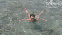 Удивляюсь отзывам, когда пишут, что не было свободных лежаков. Мы с такой проблемой не сталкивались, лежаки были всегда. У отеля есть пляж-лагуна и с пирса -открытое море. Сутра водичка очень чистенькая, ну а после обеда - понятно мутная. С пирса можна поплавать возле корралов, посмотреть много рыбок, ежиков, также мы видели мурену и ската-хвостокола.