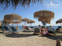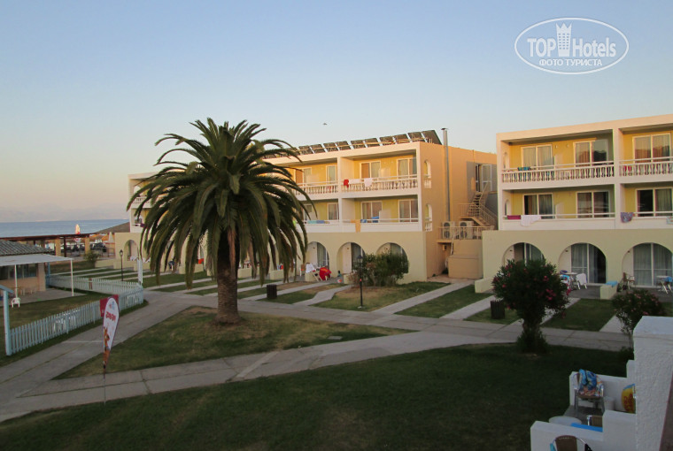 В общем и целом неплохой отель!Несколько дней назад вернулись оттуда!Отдыхали с семьёй-мужем и ребенком 7 лет!огромная территория,много корпусов,4 бассейна,в том числе 2 детских,Один понравился особенно-бассейн с горками, настоящий детский рай,лежаков рядом с ним нет,надо брать полотенца и стелить на травку!Рядом со взрослыми бассейнами есть лежаки,но их мало,не успели утром занять,в виде лежащего полотенца,можно полежать на лужайке!У бассейна висит объявление,что оставлять полотенца на целый день,таким образом бронируя лежак на весь день запрещено,полотенца в течения часа будут убраны персоналом,наши забивали на объявление и уже в 8 утра все лежаки были забиты,то же и с лежаками на пляже,они платные 3 евро один лежак на весь день,но уже в 10 утра все лежаки заняты!Море достаточно холодное,заход очень неудобный!Песок с галькой,очень больно идти по камням!Кругом островки водорослей!Я очень люблю море,но тут оно не очень гостеприимное,поэтому я больше загорала у бассейна!Есть водные развлечения в виде банана,катамарана,водных лыж,"таблетки",параплана!
