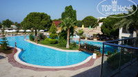Итак, прилетели мы рано, в 4 утра. На ресепшн нас встретил улыбчивый сотрудник отеля, мы одели браслеты и отправились гулять по территории. Интерьер отеля простой, территория зеленая, просторная, ухоженная, но рано утром мне показалась немного пустоватая, так как по пути к морю находятся два больших футбольных поля. Позже, когда гости отеля проснулись, заработала анимация, открылись зонтики над лежаками, отель заиграл другими красками. Теперь обо всем по порядку: